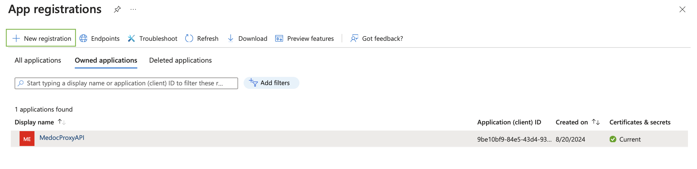 1.3 From the menu, select Identity > Applications > App registrations and select New registration: